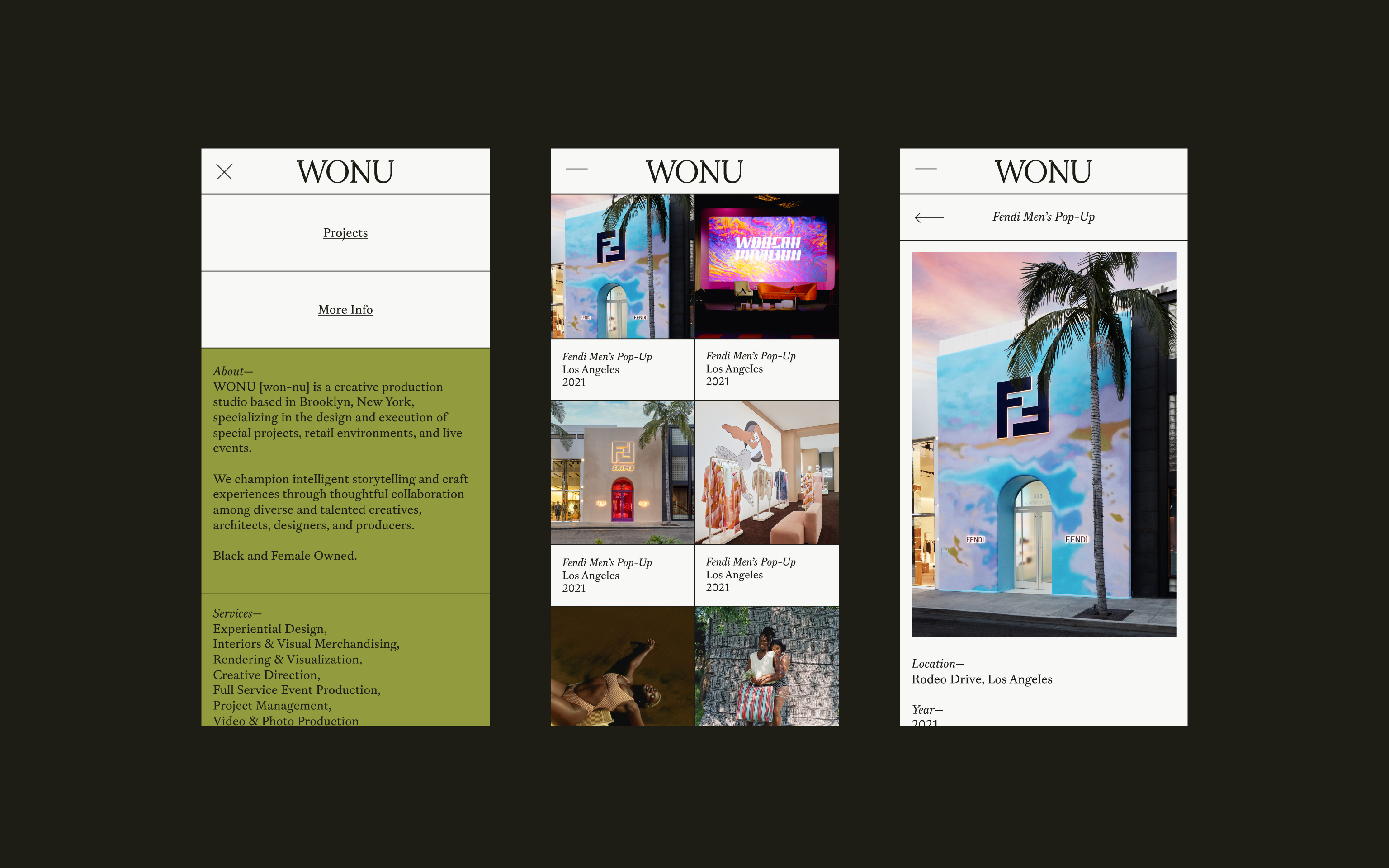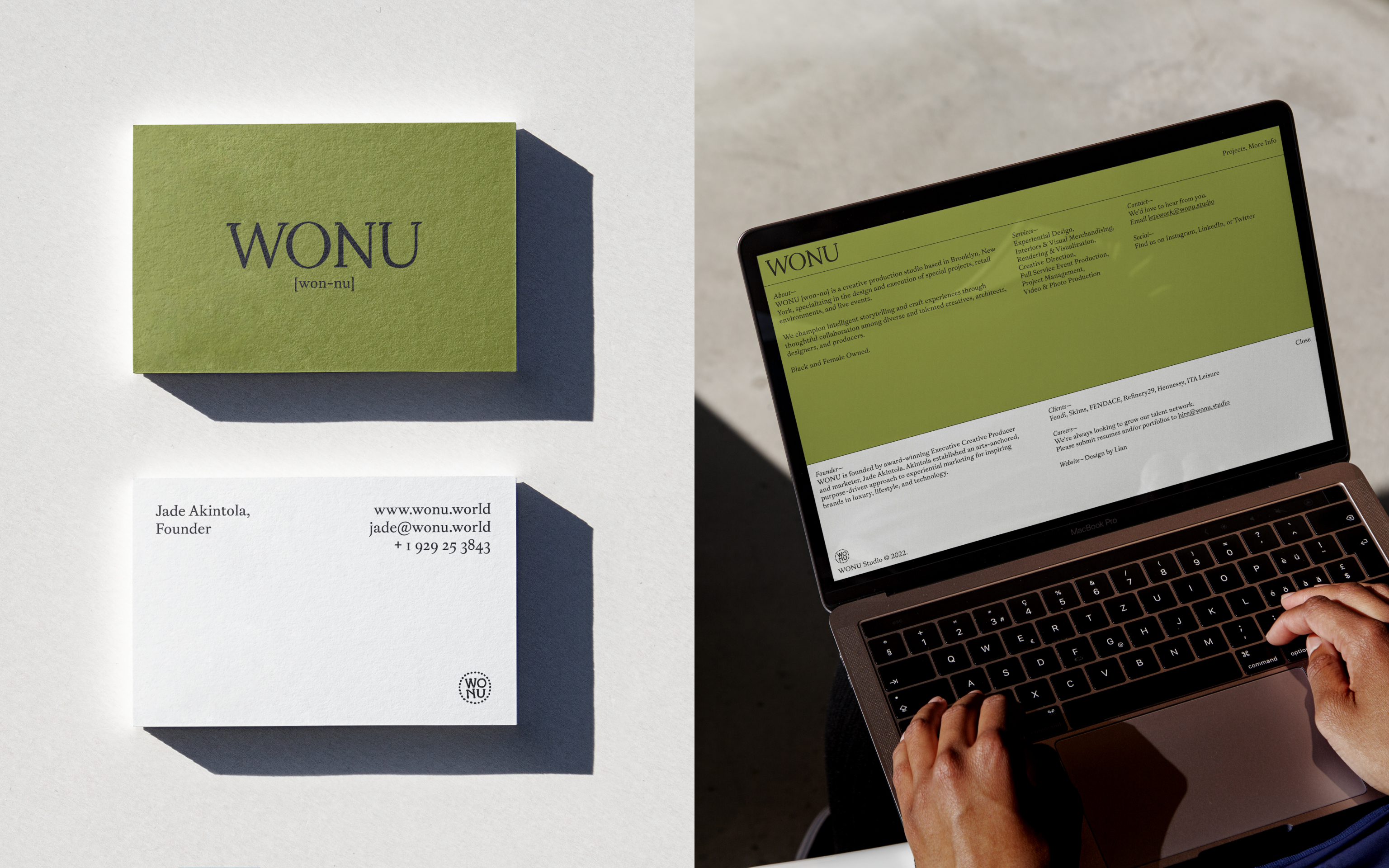 Timeless brand and web design for WONU—an independent creative studio specializing in built environments and events.
