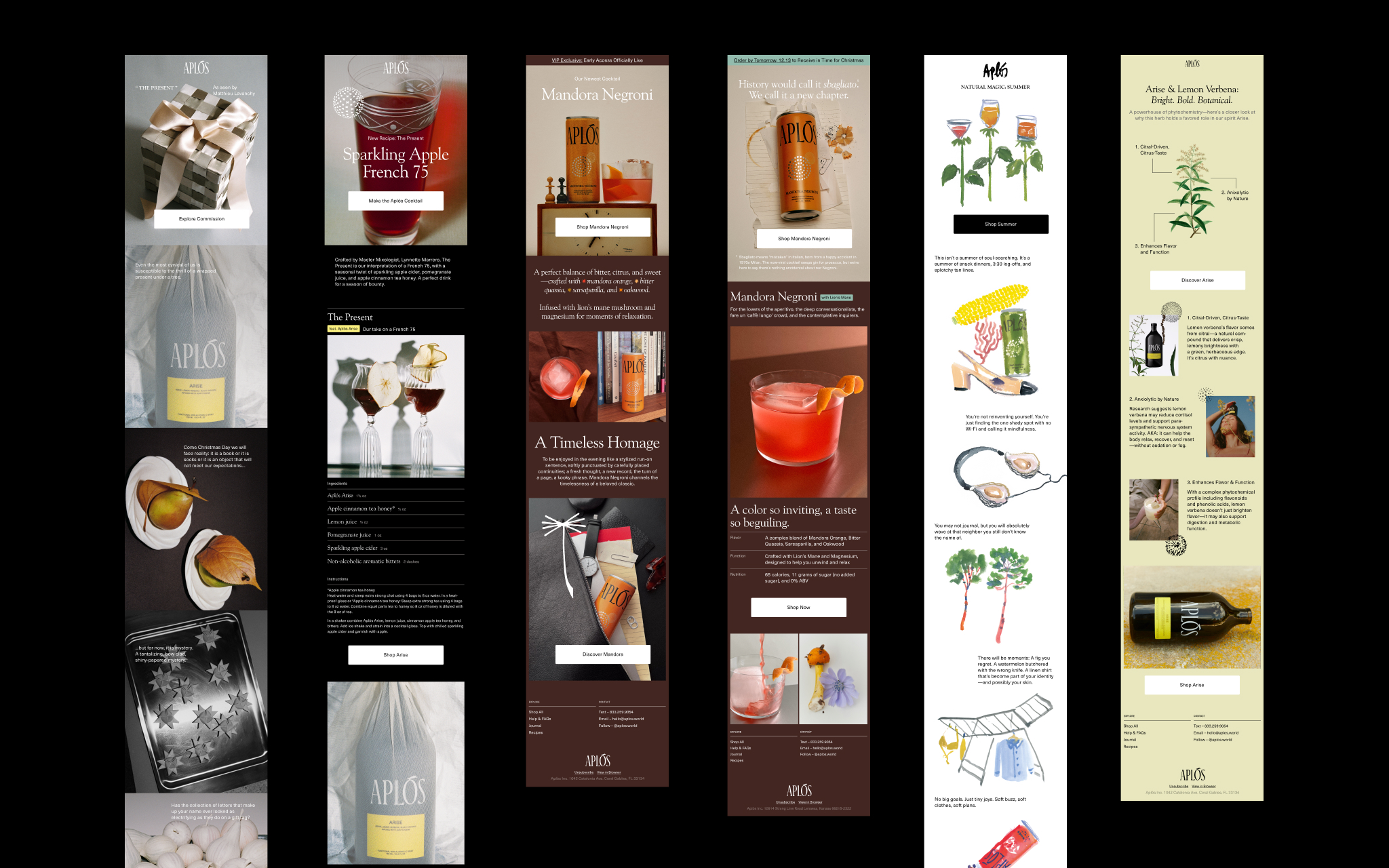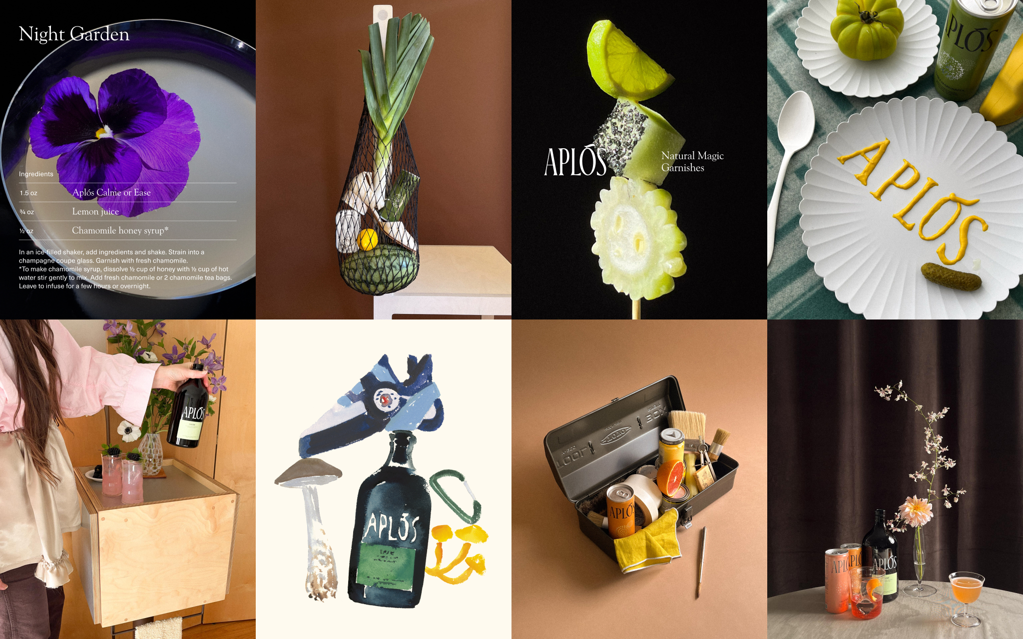 Leading creative direction across art, packaging, brand experiences, and all visual expression for Aplós,, a non-alcoholic spirits brand crafted for moments meant to be sipped slowly.